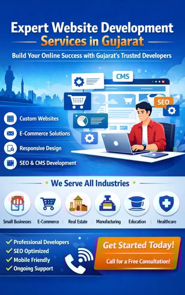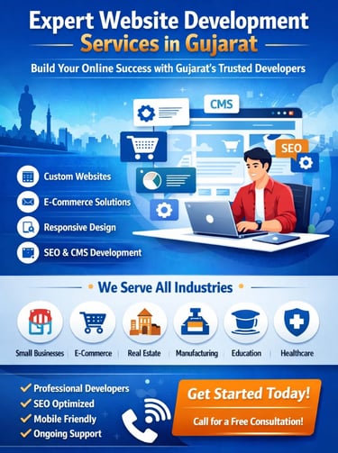 In today’s digital era, your website is the foundation of your business growth. We offer expert website development services in Gujarat, helping businesses create visually stunning, high-performance, and conversion-focused websites. Whether you are a startup, small business, or established enterprise, our custom web solutions are designed to deliver real results.